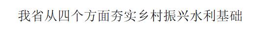 四是深入推进乡村水务建设行动。重点是抓好老百姓最关心、最直接、最现实的农村饮水安全问题。在工作举措上,就是全面实施乡村水务百县建设行动,在 2025 年以前建成 100 个试点县,通过试点县进而带动并辐射全川,以县为单元,以乡村为基础,以“大水源”为依托,建设“大水厂”,配套“大管网”,聚焦农村饮水突出问题,深入实施农村饮水工程标准化建设和水质提升行动,推动城乡供水一体化,让农村的老百姓也喝上与城市水质标准一致的饮用水,牢牢守住农村供水的安全底线。