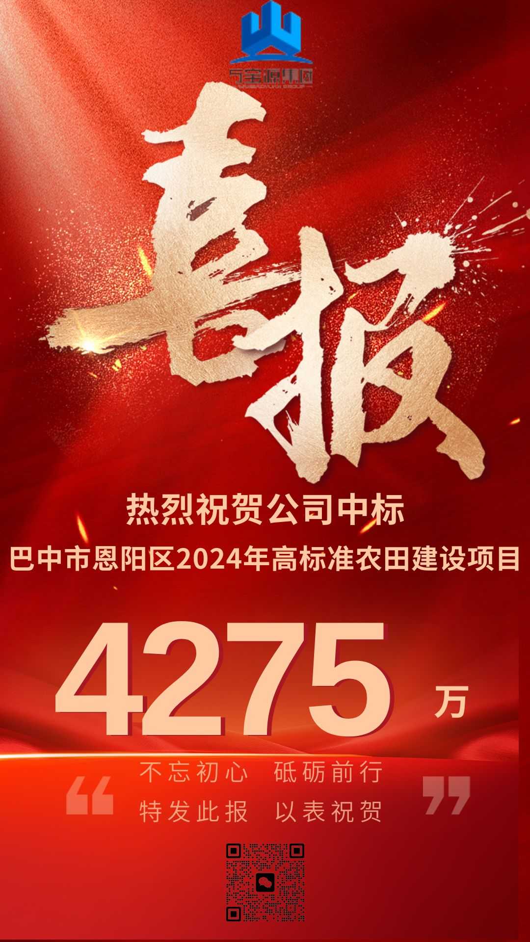 万宝源喜报 | 巴中市恩阳区2024年高标准农田建设项目(增发国债)施工中标