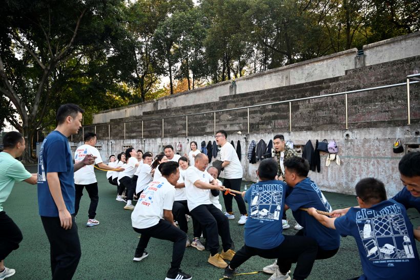团队运动共设置了花样跳绳、拔河、斗鸡、你比我猜4个项目,无论是技巧比拼还是团队协作,都把团队协作展现得淋漓尽致。