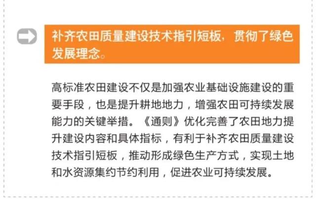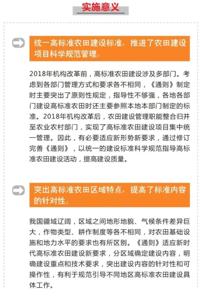 新修订的《通则》弥补了原版在实际应用中部分指标设置不合理等不足,是新时期统一高标准农田建设标准,实现农田建设项目科学规范管理的客观需要,对进一步规范高标准农田建设行为,提升高标准农田建设质量具有重要意义。