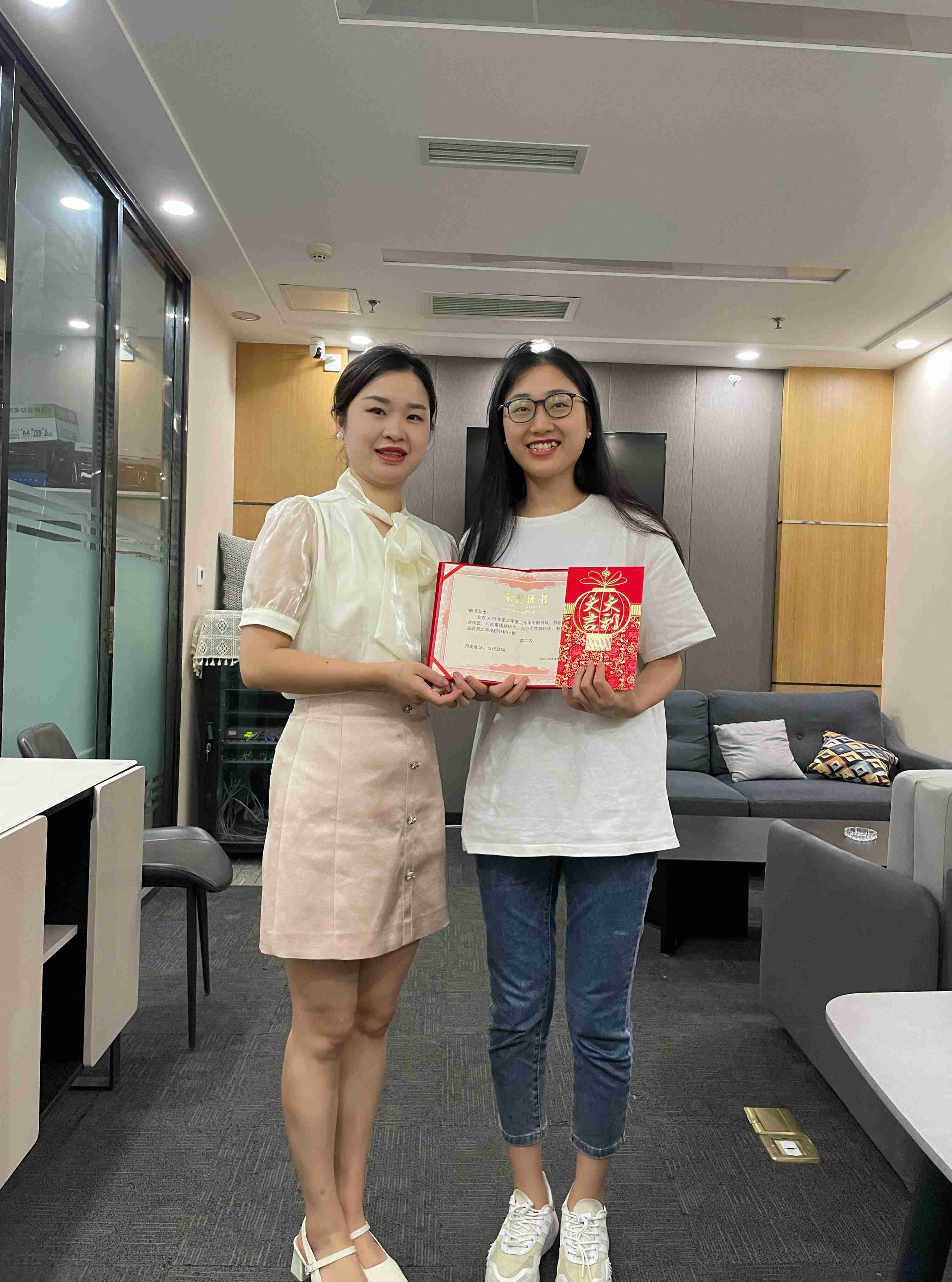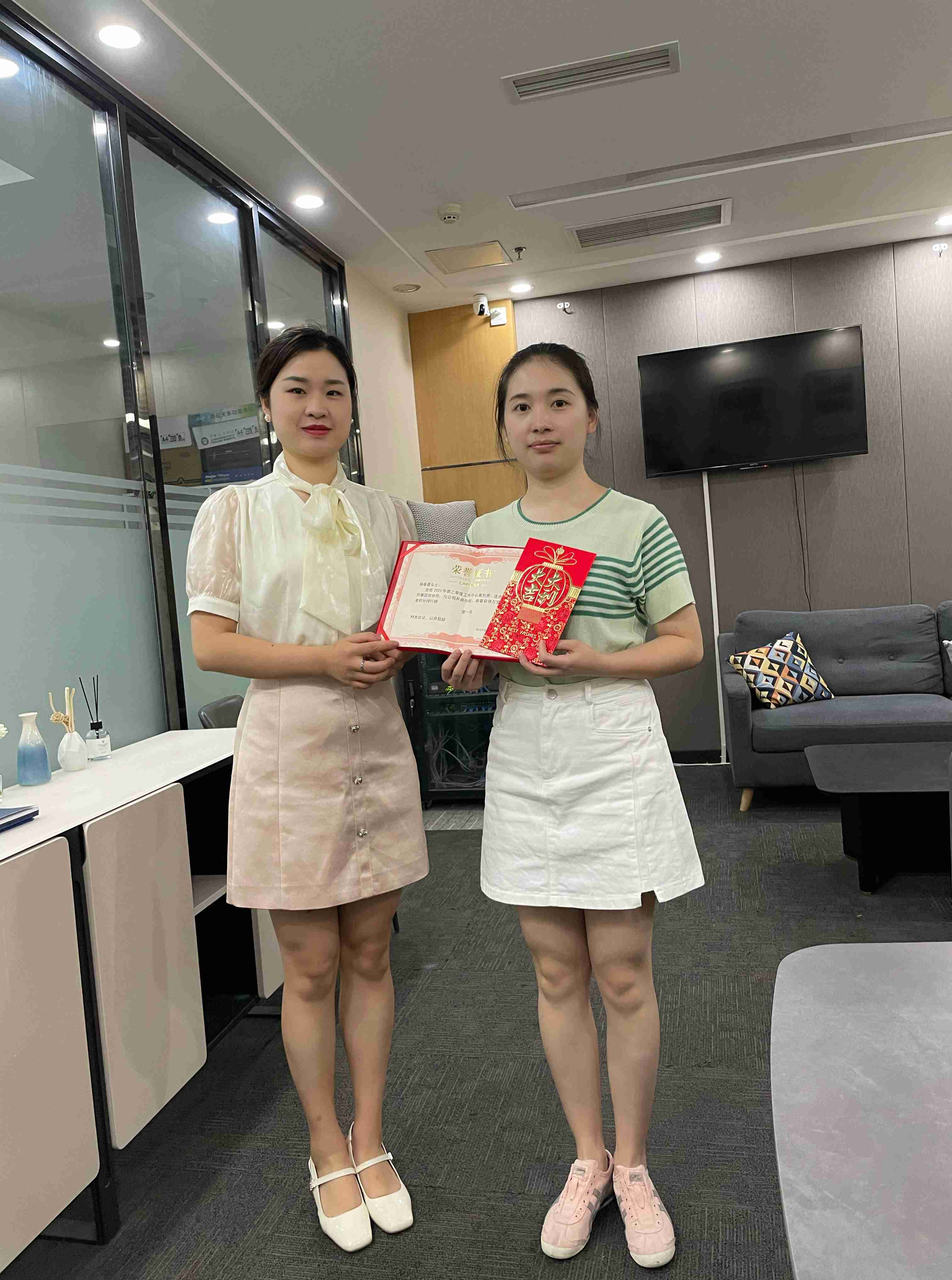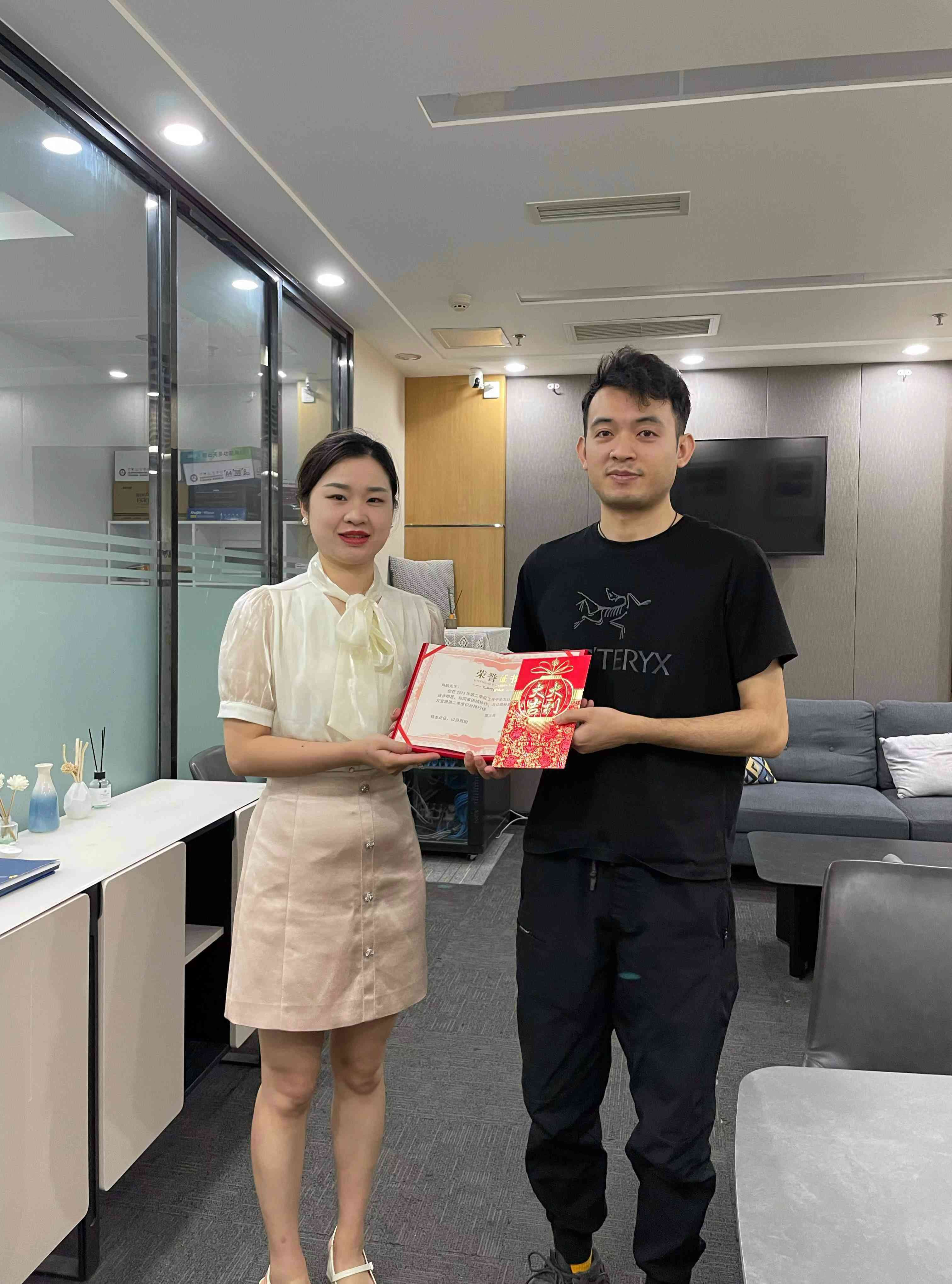 “每个人的一生都会遇见或多或少的契机,这样的契机能否给自己带来改变,关键在于这个人是否有内驱的动力”为了更好和同事协作,更高效的完成工作,熊洁为追求成长、探索前行、不被定义,积极参加公司各项活动并主动争取重要工作。熊洁始终坚信:实践是离成功最近的路,实干才有舞台。公司为激励熊洁持续进步,为其发放月薪20%的额外现金奖励,她的改变离不开一直为她付出的家人,为此公司将赠送熊洁家人800元的感恩礼品。