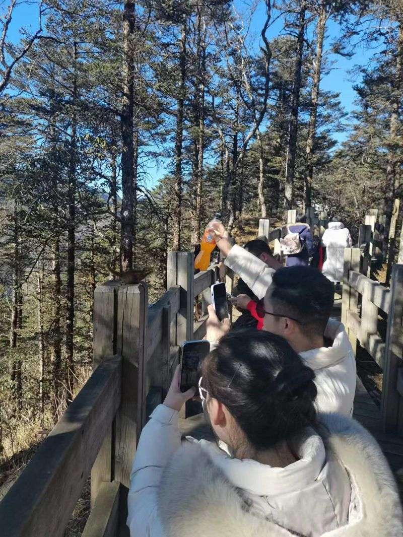 他们也一改往日的工作中的繁忙状态,悠闲的在山间漫步,登山山顶感受云海的翻涌,体验逗喂松鼠的乐趣。