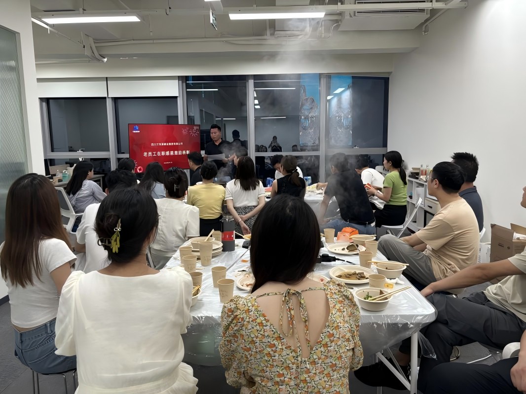 随着夕阳西下,成都高新的城市夜幕缓缓降临,一场集视觉与味觉双重享受的美食盛宴,在办公室各自忙碌的背影中开启。由行政人事部同事组织,各部门同事全力配合一起完成属于我们的办公室自助火锅局。视觉享受着成都地标建筑-双子塔夜景,味蕾享受着出自我们团队双手的火锅,浪漫且惬意的团聚让平日里的紧张与疲惫瞬间消散。