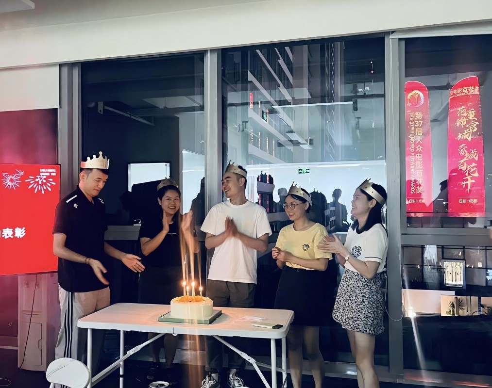 在这个充满暖意的夜晚,公司为7月的寿星们准备了一场热闹的生日会,当蛋糕推进现场,行政人事部帮寿星们戴上生日帽,应着窗外璀璨的华灯,现场气氛热烈而温馨,随着悠扬的音乐响起,大家一同为寿星们送上真挚的祝福。